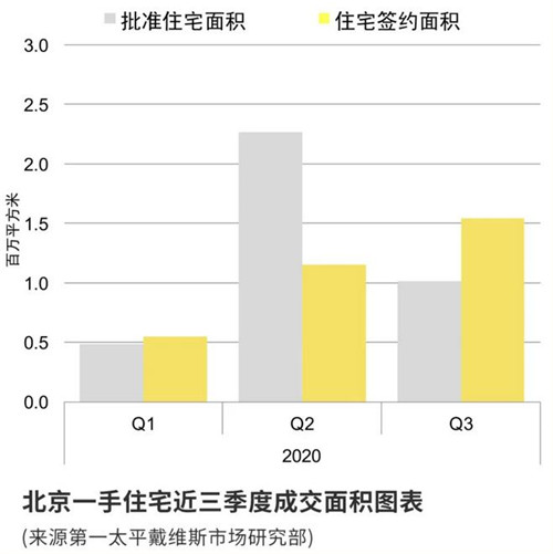 三季度,正逢后疫情階段第一個金九銀十銷售旺季,北京市一手商品住宅市場顯示出良好的銷售業(yè)績,當(dāng)季一手住宅成交面積超過154萬平方米,環(huán)比上升33.5%。