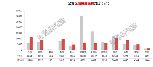 公寓市場方面,合富大數(shù)據(jù)錄得10月公寓成交量為79882㎡,同比去年“銀十”下降29%,環(huán)比9月下降21%;下半年各月成交量大致持平,基本在8-10萬㎡左右;“金九銀十”成交大體尚可,但并無表現(xiàn)突出的新盤,同比去年同期仍有差距。10月新增供應(yīng)約4.5萬㎡,來自增城新塘的奧園康威廣場及海珠南洲板塊的中海觀瀾府。