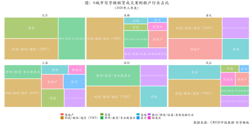 三季度,根據(jù)對北京、上海、深圳、成都、重慶等6個重點(diǎn)城市710個寫字樓樣本的租戶進(jìn)行分析,從租賃類型來看,寫字樓租賃交易以新租和搬遷為主,大部分城市的新租交易占比超五成。從租戶所在行業(yè)來看,季度內(nèi)租賃交易主要集中在TMT、金融和專業(yè)服務(wù)業(yè)三個領(lǐng)域。