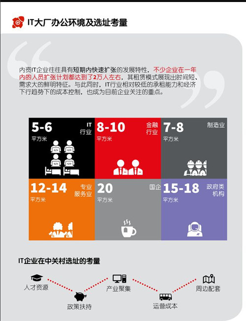 隨著IT行業(yè)蓬勃發(fā)展,中關(guān)村區(qū)域也面臨現(xiàn)代化、標(biāo)準(zhǔn)化物業(yè)可租賃面積稀缺的困境,在某種程度上限制了IT企業(yè)在市區(qū)范圍內(nèi)進(jìn)一步擴(kuò)張和升級機(jī)會。