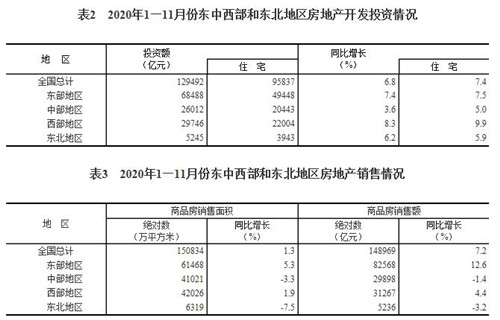 1—11月份,東部地區(qū)房地產(chǎn)開發(fā)投資68488億元,同比增長7.4%,增速比1—10月份提高0.3個百分點(diǎn);中部地區(qū)投資26012億元,增長3.6%,增速提高1.2個百分點(diǎn);西部地區(qū)投資29746億元,增長8.3%,增速持平;東北地區(qū)投資5245億元,增長6.2%,增速提高0.6個百分點(diǎn)。
