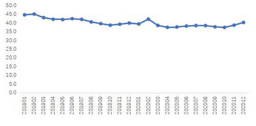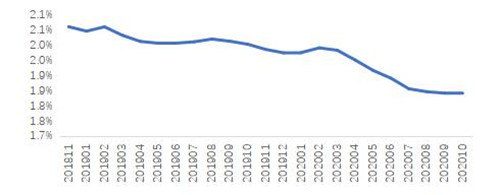 2018-2020年全國(guó)重點(diǎn)40城租金收益率均值走勢(shì)