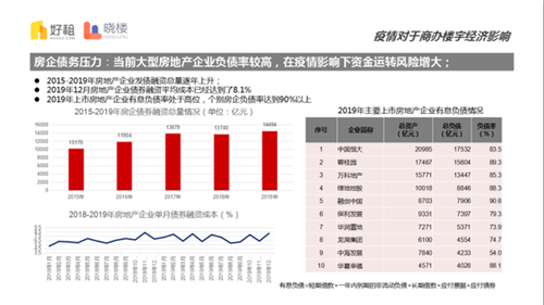在供給端上游,當(dāng)前大型房地產(chǎn)企業(yè)負(fù)債率普遍較高,在疫情影響下資金運(yùn)轉(zhuǎn)風(fēng)險(xiǎn)增大。