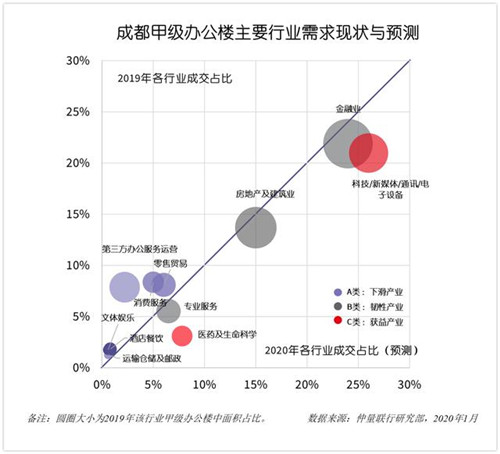 從產(chǎn)業(yè)屬性視角出發(fā),以計(jì)件、計(jì)時(shí)工種為代表的勞動(dòng)密集型制造業(yè)或面臨更高的生產(chǎn)與經(jīng)營(yíng)壓力,影響以短期為主;而科技、金融等高附加產(chǎn)業(yè)受影響更小。鑒于制造業(yè)在成都、重慶、西安三個(gè)辦公樓市場(chǎng)需求的占比并不高,預(yù)計(jì)市場(chǎng)短期下滑對(duì)辦公樓需求的直接影響有限。