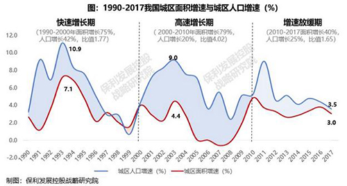 土地與人口的“資源配置”,是城鎮(zhèn)化的核心命題。從世界城市發(fā)展規(guī)律來看,在城鎮(zhèn)化快速推進時期,土地城鎮(zhèn)化快于人口城鎮(zhèn)化。近三十年,中國土地城鎮(zhèn)化明顯快于人口城鎮(zhèn)化。2011年起回落,2017年進入增速放緩階段。