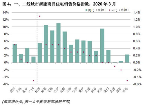 杭州和深圳是較大城市中表現(xiàn)最好的城市,杭州新建住宅價(jià)格環(huán)比上漲1.3%(僅次于西寧),深圳二手住宅價(jià)格環(huán)比上漲1.6%。
