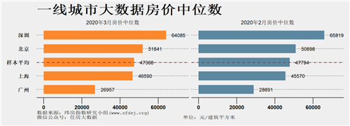 一線城市房價中位數(shù)的平均值為47368元/建筑平方米,比上月漲跌-426元/建筑平方米,其中深圳以64085元/建筑平方米居第一位。