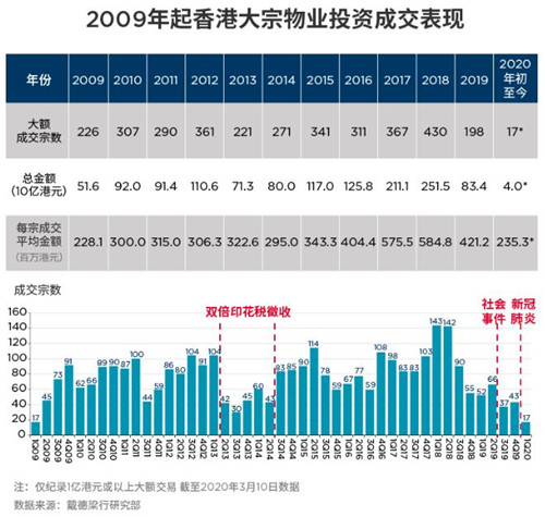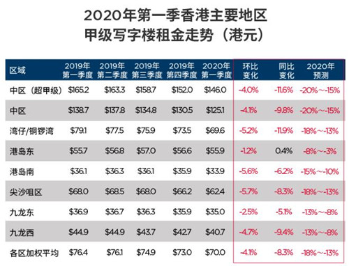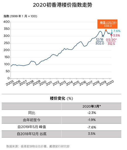 香港物業(yè)市場(chǎng)受到去年社會(huì)事件和年初疫情的雙重影響,在2020年第一季度: