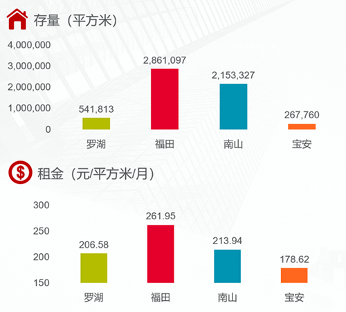 從各區(qū)的表現(xiàn)來看,羅湖區(qū)的需求持續(xù)外流,再加上個別商務(wù)空間運營商租約到期,空置率環(huán)比上升2.2個百分點至14.98%,租金環(huán)比下降1.1%至每月每平方米206.58元。福田區(qū)也在市場競爭加劇背景下租金環(huán)比下降2.3%至每月每平方米261.95元,空置率則有一定的改善微降至16.04%。三個新增供應(yīng)均位于南山區(qū),空置率繼續(xù)環(huán)比上行至34.85%,租金下降3.1%至每月每平方米213.94元。