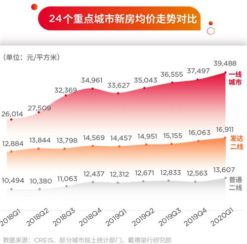 與此同時,一季度一線、發(fā)達二線及普通二線城市的新房成交均價分別較2019年第四季度環(huán)比上漲5.31%、5.28%以及8.31%。原因在于重點城市的購房熱情及對于未來房產(chǎn)保值增值的預期并沒有減少。對于重點城市而言,不排除疫情過后伴隨經(jīng)濟刺激政策落實,局部樓市出現(xiàn)需求集中釋放同時價格上探的可能。