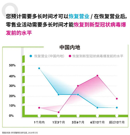 該調(diào)查結(jié)果顯示,來自中國(guó)內(nèi)地的受訪者中逾八成預(yù)期其銷售有望在12個(gè)月內(nèi)恢復(fù)至疫情爆發(fā)前的水平,而預(yù)期年內(nèi)可恢復(fù)的受訪者占比約為40%。67%的受訪者在因疫情閉店后的三個(gè)月內(nèi)已恢復(fù)營(yíng)業(yè),是亞太地區(qū)最為樂觀的市場(chǎng)。