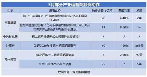 一眾產(chǎn)業(yè)地產(chǎn)企業(yè)在經(jīng)歷上月頻密的融資動作后,本月稍微放緩,而華夏幸福、中關(guān)村發(fā)展、外高橋以及蘇州高新均有所動作。