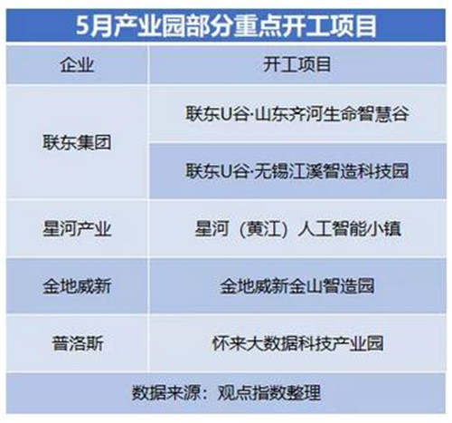 5月,繼續(xù)有一批產(chǎn)業(yè)園大型項(xiàng)目陸續(xù)上馬,持續(xù)追趕年初因疫情落下的工程進(jìn)度。其中,聯(lián)東U谷繼4月單月3個(gè)項(xiàng)目開工后,5月再度有兩個(gè)園區(qū)開工,分別位于山東齊河和無錫江溪。