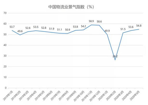 隨著供應(yīng)鏈上下游逐步恢復(fù)正常,物流業(yè)景氣指數(shù)繼續(xù)保持平穩(wěn)回升的態(tài)勢。5月份,中國物流業(yè)景氣指數(shù)為54.8%,較上月回升1.2個(gè)百分點(diǎn)。