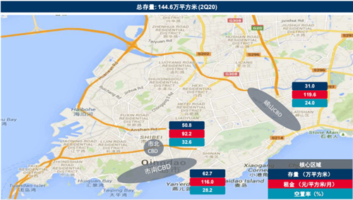 7月6日,根據(jù)戴德梁行發(fā)布的2020年第二季度青島寫字樓與零售市場(chǎng)概況調(diào)查報(bào)告,二季度全市甲級(jí)寫字樓平均租金環(huán)比下降2.74%,至人民幣108.4元每月每平方米;空置率環(huán)比上升3.1個(gè)百分點(diǎn)至28.8%,預(yù)計(jì)青島的甲級(jí)寫字樓租金短期內(nèi)仍將呈現(xiàn)下降趨勢(shì)。