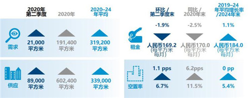 2020 年第二季度,盡管全市租金有著向下調(diào)整的壓力,琶洲的租金仍然逆市微升,環(huán)比增長(zhǎng) 0.3% 達(dá)人民幣 149/ 平方米 / 月,體現(xiàn)出琶洲寫字樓市場(chǎng)仍然企穩(wěn)。