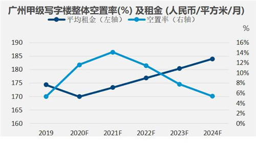 受一季度停工的影響,部分甲級(jí)寫字樓新建項(xiàng)目順延至 2021 年交付。屆時(shí)將有超過 130 萬平方米新增供應(yīng)入市,是有記錄以來最高水平。然而,其中大約一半的新增寫字樓面積為自用,并且大部分集中在琶洲。高力預(yù)期,2020 年至 2021 年,空置率將會(huì)緩和上升。