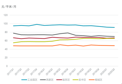 蘇州辦公物業(yè)供求量價(2017-2020.Q2)