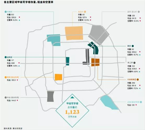 值得注意的是,北京CBD平均租金跌幅高于全市平均環(huán)比下跌3.5%的水平,為環(huán)比下降4.5%,至每月每平方米361.6元,空置率也環(huán)比上漲2個百分點(diǎn)至17.2%。