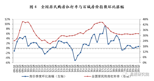三、全國居民購房杠桿率與百城房價(jià)指數(shù)關(guān)系