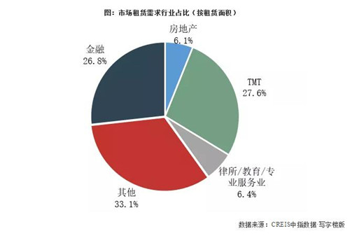 從需求方面來看,受疫情影響,商務(wù)活動還未完全恢復(fù),企業(yè)的擴(kuò)張和租賃計劃放緩,二季度的主要租賃需求行業(yè)為金融、 TMT兩部分,按租賃面積占比分別為 26.8%和 27.6%。