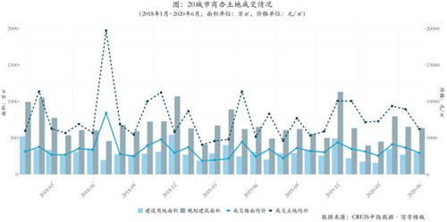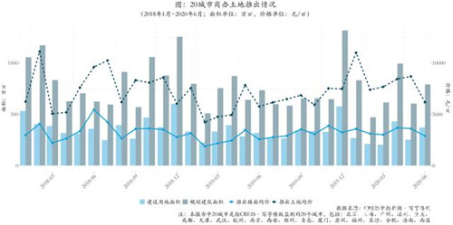 上半年20城市商辦用地推出節(jié)奏放緩,推出土地均價同比大幅上漲。