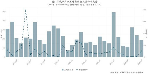 上半年20城市商辦類土地出讓金同比增長13.59%,平均溢價率降至2.03%。