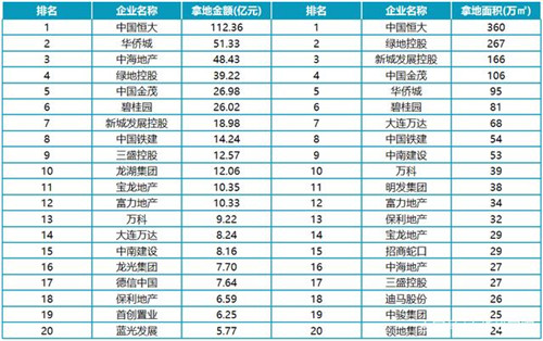 表:2020年上半年企業(yè)商辦拿地排行榜(TOP20)