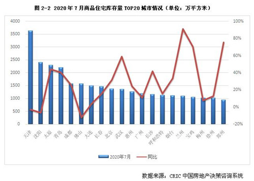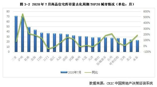 據(jù)CRIC監(jiān)測數(shù)據(jù),2020年7月百城商品住宅庫存量達(dá)到了57998萬平方米,與上月大體持平,同比則增長13%,持續(xù)高位波動。一方面,年中沖刺季剛過,據(jù)CRIC數(shù)據(jù)監(jiān)測,本月供求環(huán)比均迎來小幅回落,同比已然轉(zhuǎn)正,成交復(fù)蘇動能略有不足;另一方面,從當(dāng)前政策走向來看,已由前期紓困逐步回歸“房住不炒”,“三穩(wěn)”預(yù)期,對于局部過熱的市場,諸如杭州、寧波、南京和東莞等相繼加碼調(diào)控,深圳政策力度最為嚴(yán)苛。不得不說,隨著政策的持續(xù)發(fā)酵,前期積壓的購房需求釋放殆盡,后期的成交增長也會略顯乏力。