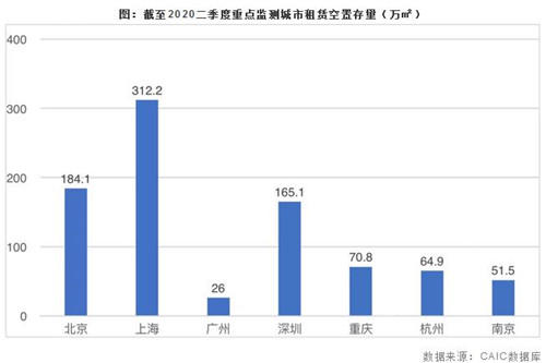 CAIC監(jiān)測的一線和重點(diǎn)二線城市數(shù)據(jù)顯示,截至2020二季度,上海辦公租賃空置存量最高為312.2萬平方米,廣州最低為26萬平方米,北京和深圳空置存量較為接近。