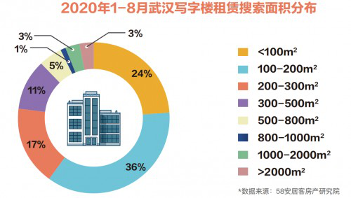 58同城、安居客在線寫字樓租賃搜索數(shù)據(jù)顯示,經(jīng)過2月份疫情期間的低谷期,寫字樓搜索熱度在4、5月份加速提升,截至8月份,武漢寫字樓搜索熱度已恢復至去年同期8成水平。