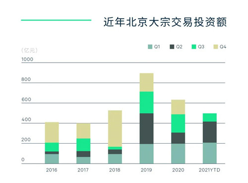 2021年第三季度,北京物業(yè)投資市場共達成十一筆大宗交易,由于全部為20億元以下的中小體量成交,且其中八筆不足10億元,交易總額環(huán)比回落,但前三季度總額仍超去年同期。在前一階段密集的投資活動之后,商業(yè)地產(chǎn)交易進入短暫的休整期,復(fù)雜多變的市場環(huán)境也使得買賣雙方的價格博弈在短期內(nèi)陷入焦灼。但考慮到不少賣家仍在積極地把優(yōu)質(zhì)物業(yè)推向市場,且近期物業(yè)租賃基本面尤其是寫字樓的強勢復(fù)蘇有望提振買家信心,這些有利因素構(gòu)成當(dāng)前投資者布局北京的機會窗口,有望促進未來交易的達成。