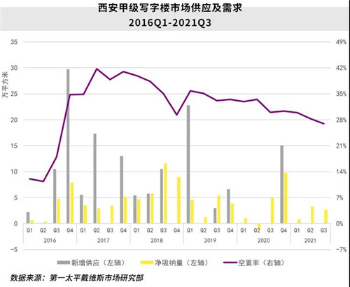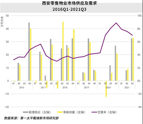 據(jù)第一太平戴維斯發(fā)布的西安商業(yè)地產(chǎn)市場報告,2021年第三季度西安房地產(chǎn)市場需求保持穩(wěn)定,零售物業(yè)市場共錄得四個項目入市,為城市帶來眾多首店;寫字樓市場在無新增供應(yīng)的背景下,空置率持續(xù)回落。