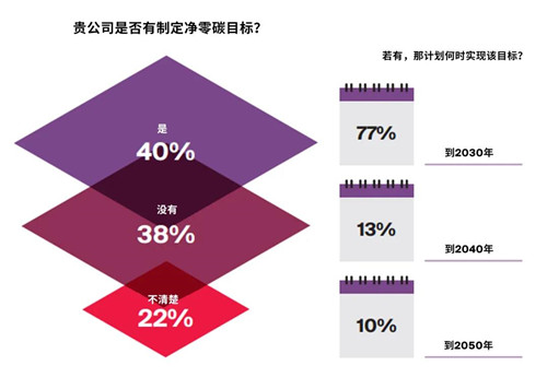 報(bào)告顯示,77%的受訪者都會(huì)設(shè)置一個(gè)公開(kāi)的凈零碳目標(biāo),而且把目標(biāo)日期設(shè)定在2030年之前。