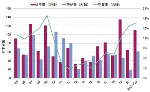 北京甲級(jí)寫字樓平均租金為每月每平方米人民幣341.7元,平均租金指數(shù)環(huán)比上升0.5%;全市空置率為16.7%,環(huán)比下降0.6個(gè)百分點(diǎn),近 11 個(gè)季度以來首次實(shí)現(xiàn)"租金漲、空置跌"的走勢(shì)。就2021年前三季度而言,北京寫字樓市場(chǎng)需求持續(xù)釋放,但四季度新增供應(yīng)量依舊巨大,未來一段時(shí)間全市寫字樓仍將面臨去化壓力。