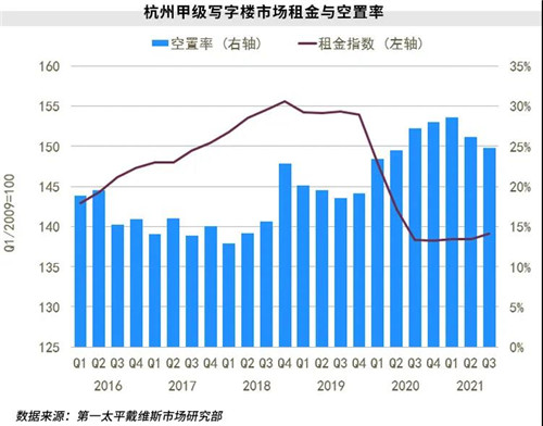 據(jù)第一太平戴維斯近日發(fā)布的杭州商辦市場報(bào)告,杭州寫字樓市場積極去化存量,前三季度凈吸納量已超2020年全年;零售物業(yè)市場大體量新項(xiàng)目出租表現(xiàn)亮眼,拉低市場空置率。