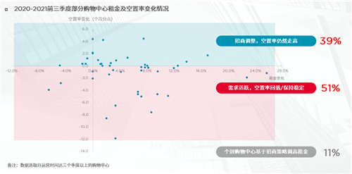 圖4:2020-2021前三季度部分購物中心及空置率變化情況