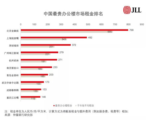 而北京作為中國大陸唯一進入榜單前十名的城市,除了金融街、CBD和中關(guān)村,還有多個租金水平靠前的子市場未納入追蹤范圍,如果對比全球最貴辦公樓市場租金水平來看,這些主要商圈也足以進入全球前30。