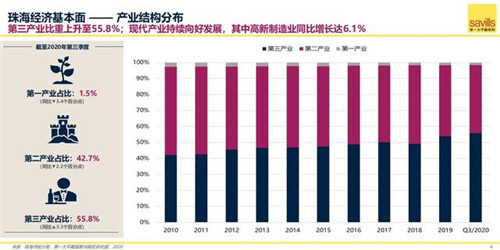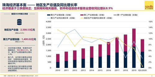 截至2020年第三季度末,珠海市地區(qū)生產總值為人民幣2,508.53億元,同比增速實現(xiàn)由負轉正,達0.6%,其中第三產業(yè)同比增速達3.3%。前八月,全市新興服務業(yè)持續(xù)向好,互聯(lián)網(wǎng)和相關服務、軟件和信息技術服務業(yè)營收同比增長8.9%。