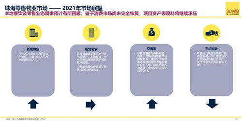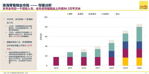 2021年,珠海市零售物業(yè)市場預計有三個新項目入市,屆時將為全市帶來24.8萬平方米新增供應。