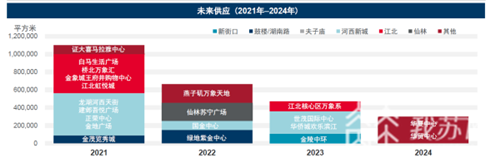 展望未來,業(yè)內(nèi)認為,南京優(yōu)質(zhì)零售物業(yè)市場2021年將繼續(xù)擴容,預(yù)計將有110萬平方米優(yōu)質(zhì)購物中心計劃于2021年入市,其中大部分位于河西和江北新區(qū),占比82.78%。