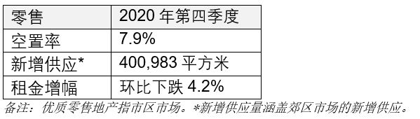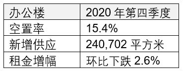 四季度共有兩個新項目入市,但目前項目入住率相對較低,推升甲級辦公樓整體空置水平。2020年底,全市空置率達到15.4%。雖然CBD核心區(qū)和麗澤的部分項目進一步延遲入市時間,在一定程度上緩解了業(yè)主承受的供給壓力,但租賃活動放緩仍然對市場構(gòu)成挑戰(zhàn)——部分租戶繼續(xù)選擇縮減規(guī)模,或采取各種策略積極尋求降低房地產(chǎn)成本。