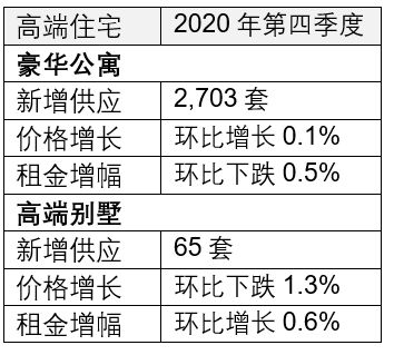 下半年市場需求的回暖推動豪華公寓售價在第三季度回歸正增長區(qū)間,而在第四季度基本保持穩(wěn)定。盡管許多開發(fā)商持續(xù)推出年底促銷優(yōu)惠活動,拉動銷售增長,但也有很多市場認可度高的優(yōu)質(zhì)項目提升了售價。“盡管看房量和銷售額均有所回升,但豪華公寓價格增長預(yù)計將在2021年持續(xù)受限,”米陽表示,“為更好地控制房企債務(wù)規(guī)模,監(jiān)管部門出臺的‘三道紅線’政策將于2021年起全面實施。政策和融資渠道收緊將為開放商持續(xù)施壓,預(yù)計短期內(nèi)房企將更注重銷售回款,而非價格增長。”