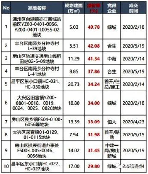 從單宗地塊成交狀況看,2020年,中海亦莊河西地塊成交金額最高;合生分鐘寺地塊成交樓面價突破歷史新高。