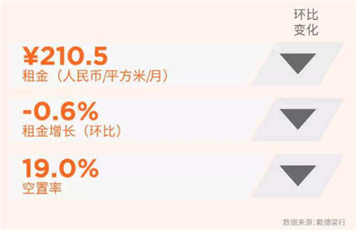 今年投入市場(chǎng)的高端物業(yè)供應(yīng)有限,積極的市場(chǎng)需求使得空置率同比大幅下降6.1個(gè)百分點(diǎn),環(huán)比再回落至19.0%。平均月租金持平在每平方米210.5元。后續(xù)市場(chǎng)面臨供應(yīng)壓力,業(yè)主采取相對(duì)積極的租賃策略將成為主流。