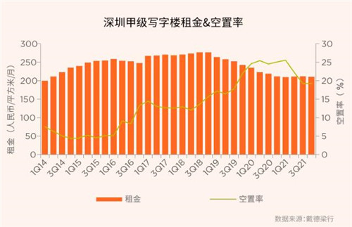 戴德梁行近日發(fā)布深圳寫(xiě)字樓市場(chǎng)報(bào)告顯示,2021年深圳寫(xiě)字樓市場(chǎng)延續(xù)活躍姿態(tài),四季度吸納量推高全年數(shù)值至67.2萬(wàn)平方米,同比上升66.8%。