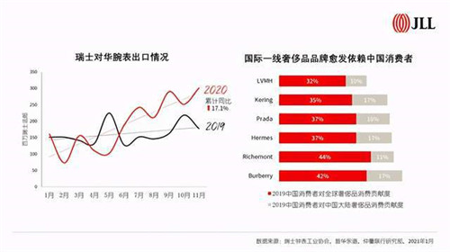 最后,中國(guó)在2020年引領(lǐng)全球高端、奢侈品消費(fèi),讓不少國(guó)際一線品牌將全球新品發(fā)布會(huì)放在國(guó)內(nèi)舉行。中國(guó)消費(fèi)市場(chǎng)對(duì)全球的價(jià)值在2019年已表現(xiàn)十分明顯,中國(guó)市場(chǎng)對(duì)一線品牌的貢獻(xiàn)率普遍不低于30-40%。2020年,疫情導(dǎo)致中國(guó)消費(fèi)者無(wú)法跨國(guó)消費(fèi)的背景下,瑞士對(duì)華腕表出口更是同比大幅增長(zhǎng)17.1%,足見(jiàn)中國(guó)消費(fèi)者的影響力。尤其在疫情可能“常態(tài)化”的預(yù)期下,中國(guó)消費(fèi)之于全球經(jīng)濟(jì)、國(guó)際品牌的價(jià)值已不言而喻。