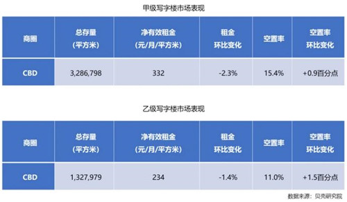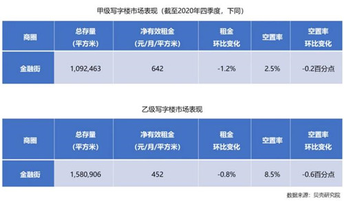據(jù)貝殼樓盤字典統(tǒng)計(jì),截至2020年四季度,全市寫字樓總存量超9,000萬(wàn)平方米,其中甲級(jí)寫字樓存量錄得1,074.3萬(wàn)平方米,乙級(jí)寫字樓存量為701.4萬(wàn)平方米。全市共有九個(gè)主流寫字樓商圈,其中金融街、中關(guān)村和CBD為核心商圈,東二環(huán)、東長(zhǎng)安街、燕莎、望京、奧林匹克和麗澤金融商務(wù)區(qū)為次核心商圈。