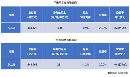 東二環(huán)作為次核心商圈中歷年表現(xiàn)最為穩(wěn)定的子市場(chǎng)之一,由于2020年下半年迎接了超過(guò)18萬(wàn)平方米的新項(xiàng)目入市,甲級(jí)寫字樓市場(chǎng)空置率出現(xiàn)大幅上升;2021年依然會(huì)有15萬(wàn)平方米左右的新體量入市,預(yù)計(jì)空置率會(huì)繼續(xù)上揚(yáng)。乙級(jí)寫字樓市場(chǎng)表現(xiàn)在2020年受到疫情影響出現(xiàn)下滑,預(yù)計(jì)2021年會(huì)小幅回暖。