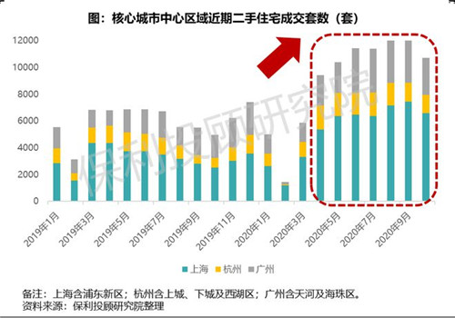 一線及華東南京、杭州等核心二線城市全年成交量均較2019年有所上漲。